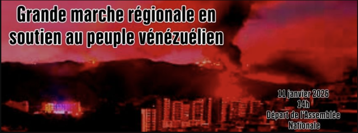 En réponse à l’agression étasunienne armée du Vénézuela qui a débuté durant la nuit du 2 au 3 janvier 2026 et à l’enlèvement du président Maduro et de sa conjointe, joignez-vous à la grande marche régionale en soutien au peuple vénézuélien qui aura lieu le 11 janvier 2026 à 14h00 en partance de la Place de l’Assemblée nationale. L’objectif est d’exprimer notre soutien aux victimes du bombardement de Caracas, de dénoncer l’ingérence militaire et économique des États-Unis en Amérique latine et de montrer la force du mouvement anti-impérialiste qui existe dans la ville de Québec.