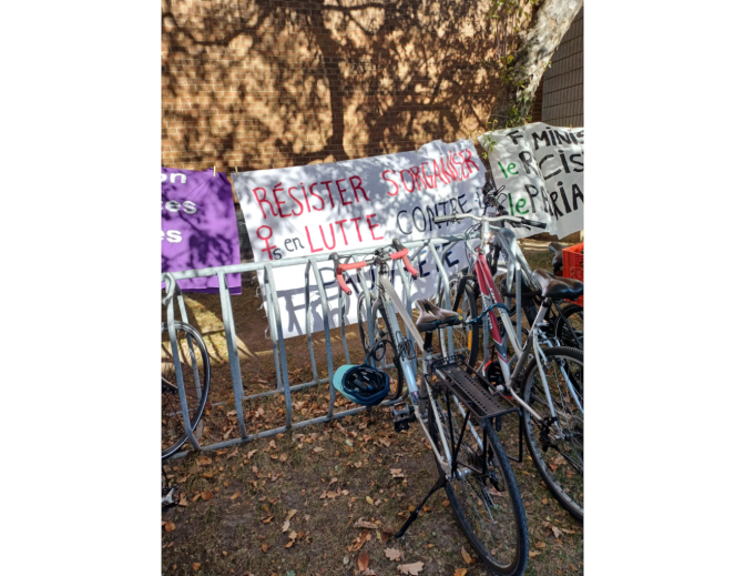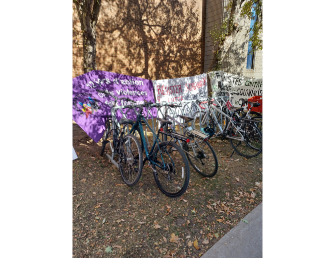 Le Village féministe a transformé les corridors du Patro en boulevards féministes avec des noms de femmes. De même que les escaliers et les salles d’atelier. Des noms de femmes discriminées comme autochtones, femmes noires ou femmes handicapées ont aussi eu leur place dans la toponymie du Village.Tout ceci pour préparer l’action de visibilité qui clôturait la rencontre et qui consistait à afficher des noms de femme en protestation à la toponymie de la Ville de Québec presqu’exclusivement masculine.
