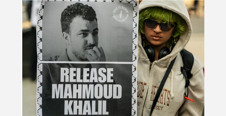 Pétition qui a permis à Khalil d’arracher la suspension de l’expulsion, en attendant l’examen de la décision de son incarcération. Pour de nombreux défenseurs des droits de l’homme et de la liberté d’expression, l’administration Trump « utilise ses pouvoirs de contrôle de l’immigration pour réprimer les critiques contre Israël », présenté comme « une entité usurpatrice et néonazie sioniste ». Pour le Conseil des relations américano-islamiques, « la décision illégale du département de la Sécurité intérieure d’arrêter Khalil, uniquement en raison de son activisme pacifique contre le génocide est une attaque flagrante contre la garantie de la liberté d’expression du Premier Amendement, les lois sur