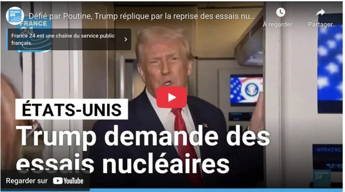 Le message trumpien procède d’une surenchère évidente sur les annonces du Kremlin : comment Donald Trump aurait-il pu laisser toute la lumière à Vladimir Poutine en matière d’innovations nucléaires de défense ? Il lui fallait réagir par une annonce plus forte, plus choquante et plus massive. C’est tout le sens de la reprise des essais sur « les armements nucléaires ». Personne ne sait s’il s’agit de tester de nouvelles ogives, de nouveaux vecteurs, de nouveaux modes de propulsion ou de nouvelles technologies de guidage. Mais tout le monde retient que c’est le président américain qui a officiellement relancé et pris la tête de la course mondiale à la bombe. C’était le but visé. Examinons maintenant ses conséquences.
