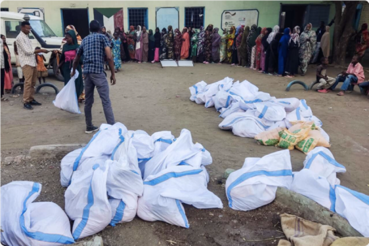 Tiré de Courrier international. Article originalement paru dans lepays.bf Légende de la photo : Des déplacés internes font la queue pour récupérer des vivres à Gedaref, le 12 mai 2024. Les affrontements ont repris entre l’armée soudanaise et les RSF, à El-Fasher. Photo AFP.