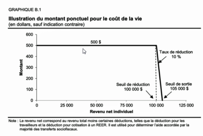 On se souviendra certainement de ce budget comme celui des « 500 $ par adulte » puisque le gouvernement versera cette somme de manière ponctuelle à toutes les personnes de 18 ans et plus ayant un revenu de moins de 100 000$, soit environ 6,4 millions de Québécois·es. Face à la hausse soutenue des prix observée depuis 2021, le gouvernement avait déjà mis en place une prestation exceptionnelle pour le coût de la vie lors de la mise à jour de l’automne 2021, une aide forfaitaire unique allant jusqu’à 200$ par adulte pour les bénéficiaires du crédit d’impôt pour solidarité.
