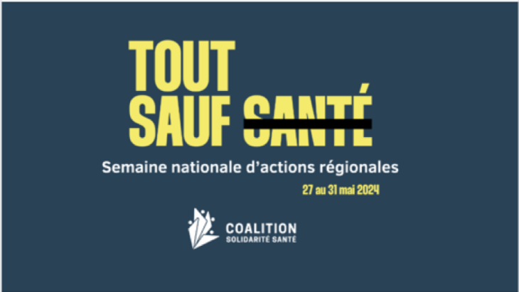 Pendant la dernière semaine de mai, nous lancerons au gouvernement un message fort et clair : _Le privé, c’est tout sauf santé !_ L’objectif de ces actions est non seulement de faire pression sur le gouvernement pour arrêter la privatisation de notre réseau, mais aussi de sensibiliser la population aux dangers qui guettent l’accessibilité aux soins et aux services.