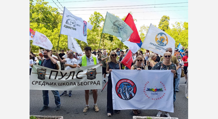 Les signataires de la déclaration sont : Communauté des employé·es de l’enseignement préscolaire – Cercle préscolaire, PULS des écoles primaires de Belgrade, PULS des écoles secondaires de Belgrade, Écoles primaires unifiées de Zemun, Syndicat en cours de création « Jedinstvo EPS », Assemblée des travailleurs et des travailleuses de la santé de Serbie, Communauté des arts et de la culture, Syndicat des artistes musicaux, IT Serbie, Syndicat des travailleurs et des travailleuses des médias en cours de création – SMER, Syndicat du pouvoir judiciaire, Glas prosvete – Zaječar, Plénum des travailleurs et des travailleuses de l’éducation de Kraljevo, Plénum des éducateurs et des éducatrices de Knjaževo, Groupe des ingénieur·es de Serbie – Revendications des ingénieur·es et Association de l’éducation du Banat.
