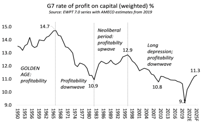 Titre : Taux de profit sur le capital du G7 (pondéré) %