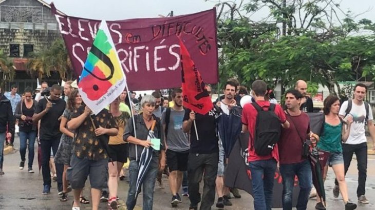En novembre : Rectorat « fermé » pendant une semaine. En février et mars : grève reconductible des personnels, droit de retrait collectif, blocage de plusieurs collèges et lycées, rassemblement devant la Préfecture et le Rectorat, grève à l’Université de Guyane et l’ESPE, etc. En avril : grève suivie dans le Primaire et le Secondaire avec des écoles fermées.
