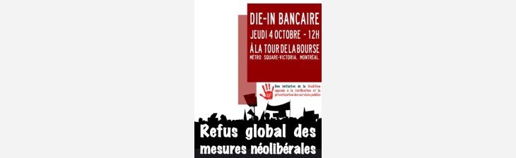 Cette action de la Coalition opposée à la tarification et à la privatisation des services publics, dont la FFQ est membre, vise à rappeler notre message en faveur de la redistribution de la richesse et sur nos alternatives fiscales voulant faire contribuer davantage les institutions bancaires et les grandes entreprises aux finances publiques.
