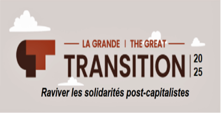 Comme La Grande transition 2025 sera tenue dans le cadre du FSMI, nous vous invitons à soumettre des propositions qui s’inspirent de cette volonté de croiser des expériences et des expertises dans l’espoir de créer des solidarités post-capitalistes sans frontières.