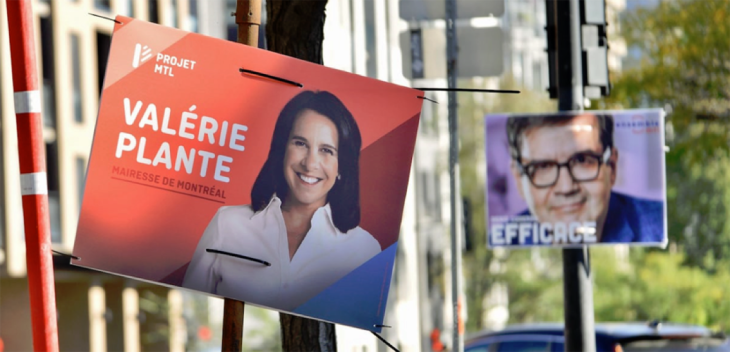[5] Pendant sa campagne électorale, des affiches présentaient Valérie Plante comme l’homme de la situation, voulant ici faire un clin d’œil au fait qu’elle pouvait être la première femme à accéder à la tête de la ville.