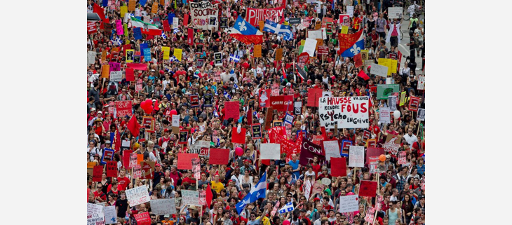 Pourtant, la situation, elle, n’est en rien comparable. Les grèves étudiantes aujourd’hui sont un élément d’un mouvement beaucoup plus large contre des mesures d’austérité imposé par les libéraux, qui n’ont pas été élus pour les appliquer. La bataille concerne des bouleversements sociaux qui ont été clairement anticipés en 2012, mais qui sont maintenant plus tangibles et menaçants. Il ne s’agit plus d’éducation seulement, mais d’une remise en cause radicale du modèle québécois.
