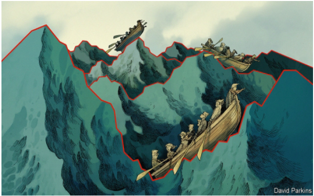 « Chercher du sens sur les marchés financiers, c’est comme chercher à s’orienter dans une mer démontée [19] ». Cette formule désabusée est tirée d’un article de l’Economist qui conclut avec une autre, tout aussi savoureuse : « avec le recul du temps, on trouvera de nombreuses incohérences dans la configuration actuelle des prix des actifs ». Mais, derrière cet understatement au parfum très british, l’éditorialiste, de son propre aveu déboussolé, se réfugie dans une interprétation psychologique plutôt qu’économique. Il évoque l’inquiétude, la peur, l’anxiété, une exubérance exagérée, les émotions, les humeurs, etc. Pour ajouter à la déprime, il ne manque plus au tableau que l’annonce rituelle par Nouriel Roubini, d’un « risque croissant » de récession et de crise en 2020 [20].
