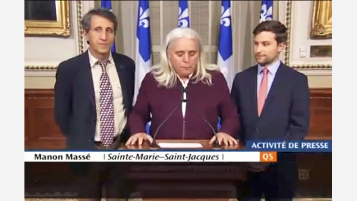 15 juin 2018 | Point de presse de Mme Manon Massé, députée de Sainte-Marie–Saint-Jacques, M. Gabriel Nadeau-Dubois, député de Gouin, et M. Amir Khadir, député de Mercier