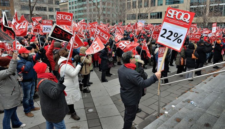 La CSN manifeste devant les bureaux du Conseil du trésor à Montréal :