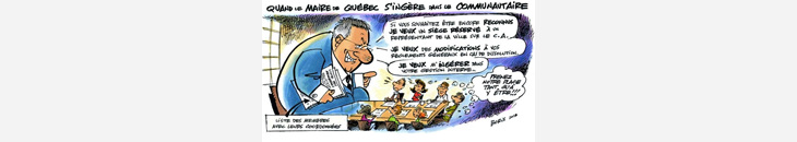 On se rappelle que la Ville de Québec avait tissé avec nous un partenariat respectueux favorisant la vie communautaire dans les quartiers. Cette approche s’inscrivait dans le mouvement Villes et Villages en santé auquel la ville de Québec adhère depuis 1988 et qui a pour objectif l’amélioration de la santé et de la qualité de vie de ses concitoyens. C’est ainsi que la Ville mettait à la disposition des groupes la location de ses salles à tarif réduit et n’hésitait pas à prêter ses équipements à l’occasion d’évènements spéciaux ou de fêtes de quartiers. En 1992, elle mit en place le secteur de l’entraide communautaire au sein du Service de la culture, du loisir et de la vie communautaire. Même le programme d’aide à l’opération des locaux, institué en 1995 et dont le but était d’alléger les coûts d’opération des locaux des organismes d’entraide communautaire en versant une subvention à hauteur de 7 $ le mètre carré, visait en fait à compenser pour la nouvelle taxe sur les immeubles non résidentiels et à en minimiser les impacts financiers sur les groupes. Tous ces avantages que la Ville accordait au milieu communautaire s’inscrivaient dans un esprit d’échange et de collaboration et participaient à l’expression de la vie citoyenne dans la cité.