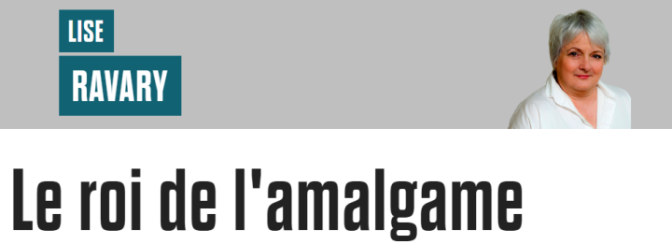 Manifestement, Mme Ravary n’avait donc pas lu mon billet attentivement avant de me traiter, à l’aveuglette, de « roi de l’amalgame ». Elle semblait plutôt se référer à un article de « Montréal Antifasciste », organisation dont je ne fais pas partie.