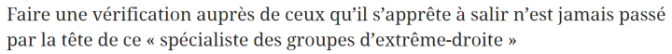 Commençons par cette critique : je serais coupable de ne pas « Faire une vérification auprès de ceux qu’il s’apprête à salir ».