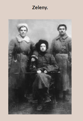 Zeleny était à la tête de la Division du Dniepr, la force paysanne qui avait été la pointe du renversement de Skoropadsky puis de Petlioura, et qui va également provoquer l’effondrement de Rakovsky. Il rompt avec l’armée rouge et le nouveau régime, auquel il ne s’est jamais intégré, dans la nuit du 20 au 21 mars, en se proclamant « bolchevik, mais pas communiste » : les bolcheviks sont ceux qui ont appelé au grand partage et à l’autogouvernement, les « communistes » sont les flics qui viennent prendre les récoltes. Il contacte un commandant de brigade de l’armée rouge âgé de 20 ans, Anton Chary dit Bohounsky, autoproclamé « ataman des troupes rouges de la rive gauche du gouvernement de Poltava », un bolchevik, mais en fait un des rares bolcheviks à avoir engagé la lutte armée contre Skoropadsky, en 1918. Ils s’associent avec un écrivain, de l’aile gauche de la social-démocratie ukrainienne, origine des communistes indépendantistes dits oukapistes, Olexandr Hroudnytsky, et au cousin de Bohounsky, commandant du 1° régiment de Zolotonocha, Ivan Lopatkine, soupçonné, manifestement à juste titre, d’antisémitisme par le commandement d’Antonov-Ovseïnko, qui ne l’estime, ceci dit, « pas pire » que les autres chefs locaux incorporés dans l’armée rouge.