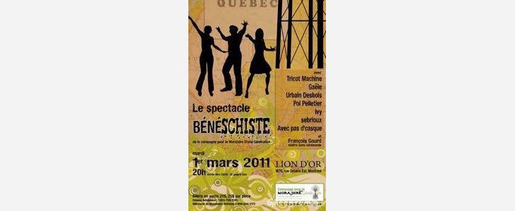 Mardi, 1er mars 2011, 20 h, au Lion d’or, 1676, rue Ontario Est, Montréal