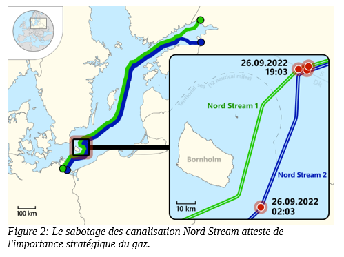 Puissant coup de théâtre, les 26 et 27 septembre 2022, les gazoducs Nord Stream 1 et 2 sont sabotés, une série d’explosions détruisent trois des quatre canalisations gazières. Cet acte délibéré crée d’importantes fuites de gaz en surface de la mer Baltique, qui se manifestent par des bouillonnements de plusieurs centaines de mètres de diamètre. Plusieurs détonations sous-marines de fortes puissance ont été détectées par les sismologues européens. Les deux gazoducs russes étaient à l’arrêt, mais pleins de gaz ; ceci afin de maintenir la pression pour pouvoir redémarrer les approvisionnements au besoin. Fini le chantage russe envers les Européens. Très nombreuses sont les têtes qui se tournent vers Washington.