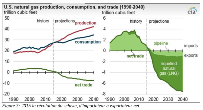 Nous devons revenir à la politique gazière américaine des 15 dernières années pour comprendre le positionnement des États-Unis. Petit retour en arrière…. Depuis ses débuts dans les années 2000, le développements de l’industrie gazière pour atteindre l’autonomie énergétique aux États-Unis a été qualifié de véritable révolution. En moins d’une décennie, les États-Unis passe d’un statut d’importateur net de gaz, à un statut d’exportateur net ; générant même des surplus croissants de production.