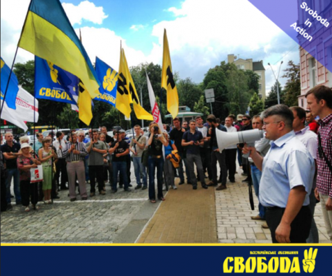 Pas une photographie, pas un reportage télévision qui ne donne à voir les insignes de cette organisation montante. Forte de 37 députés à la Verkhovna Rada (Assemblée nationale), « Svoboda » est devenu en 2012 la 4ème force politique de l’ancienne république socialiste. Une percée électorale et un activisme qui ont imposé Oleg Tiagnibok — au nombre des leaders de l’opposition — au président Viktor Ianoukovitch.