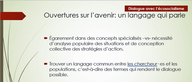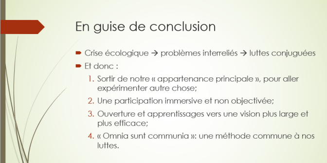 Nous publions ci-dessous la présentation d’Élisabeth Germain faite dans le cadre d’un atelier tenu lors de la Grande Transition. (PTAG)
