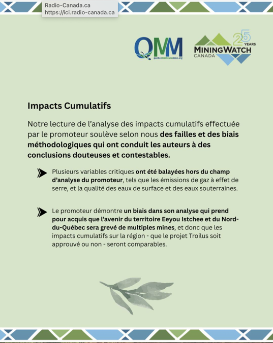 Objet : Commentaires sur l’étude d’impact du projet minier Troilus d’or et de cuivre de Troilus Gold en Eeyou Istchee dans le Nord-du-Québec